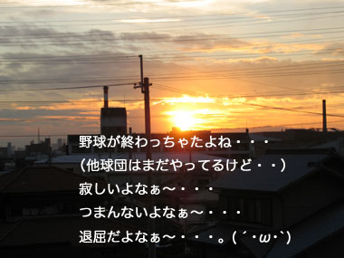 優勝しちまった途端にキレイさっぱり地上波から自然消滅してしまったプロ野球中継。 コラコラ、まだシーズンは終わっちゃいませんぞ! えっ? 視聴率とれない野球中継より特番の方が大事だって!? 見たければ専用チャンネルで勝手に見ろっバカ野郎って~!? まぁ・・・しゃぁ~ないけどなっ。(あっさり認める・w)