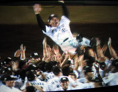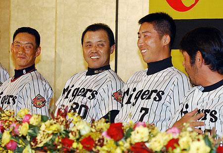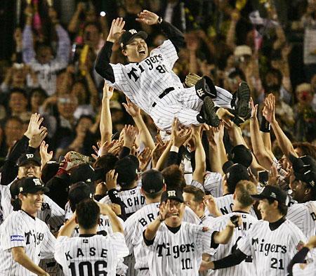レットスター・赤星が、鳥ビァ~ン・鳥谷が、ミスターツーベース・アンディが、鉄人アニキ・金本が、キャプテン打点王・今岡が、テリーマン・スペンサーが、虎の要・矢野が、ポップフライ・藤本が、悩める6番打者・桧山が、不死鳥・濱中が、器用な重戦車・関本が、いぶし銀・片岡が、大金星・中村豊が、とにかくベンチに居るみんなが全員野球で必ずやってくれますぅ。 そして自慢のJFK、鉄腕ミスターホールド・藤川も料理人シェフ・ウィリアムズもドラマチック久保田も、とにかく、とにかく今夜で決めるぞー!