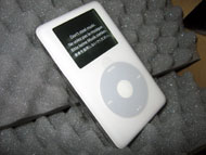 さてっ、バッテリー交換とは名ばかりで修理などする手間を考えると新品と交換したほうがいいと、Appleから返送されてくるのは新品のiPod 20GBである。 その傷ひとつ付いてない未使用のiPod 20GBを下取りに出す作戦なのである。 これで下取り価格UP間違いなしー!(ホンマかぁ~?)。 まさに完璧な完全犯罪(はんざい?)で古畑任三郎も真っ青なのである。(w